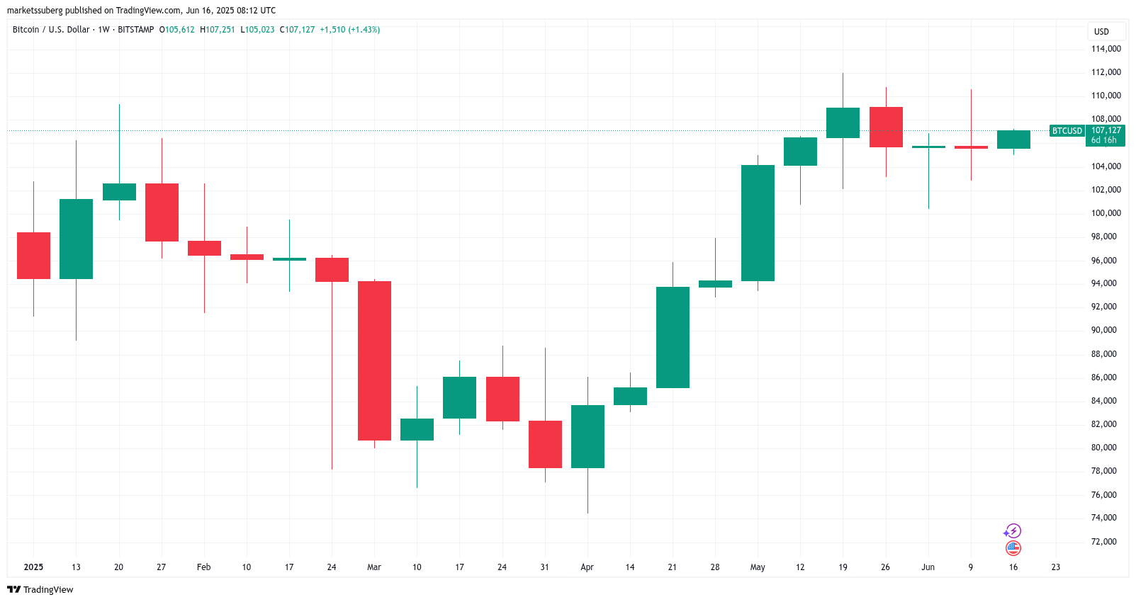 • A solid weekly close and a trip past $107,000 put BTC/USD in a strong position as Wall Street returns.