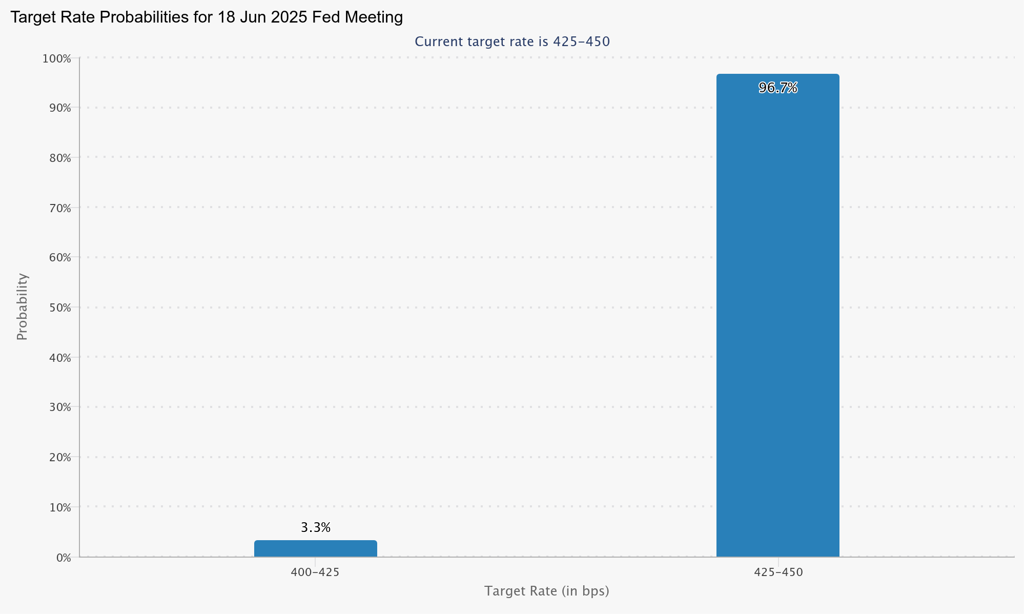 Fed target rate probabilities for June 18 FOMC meeting. Source: CME Group
