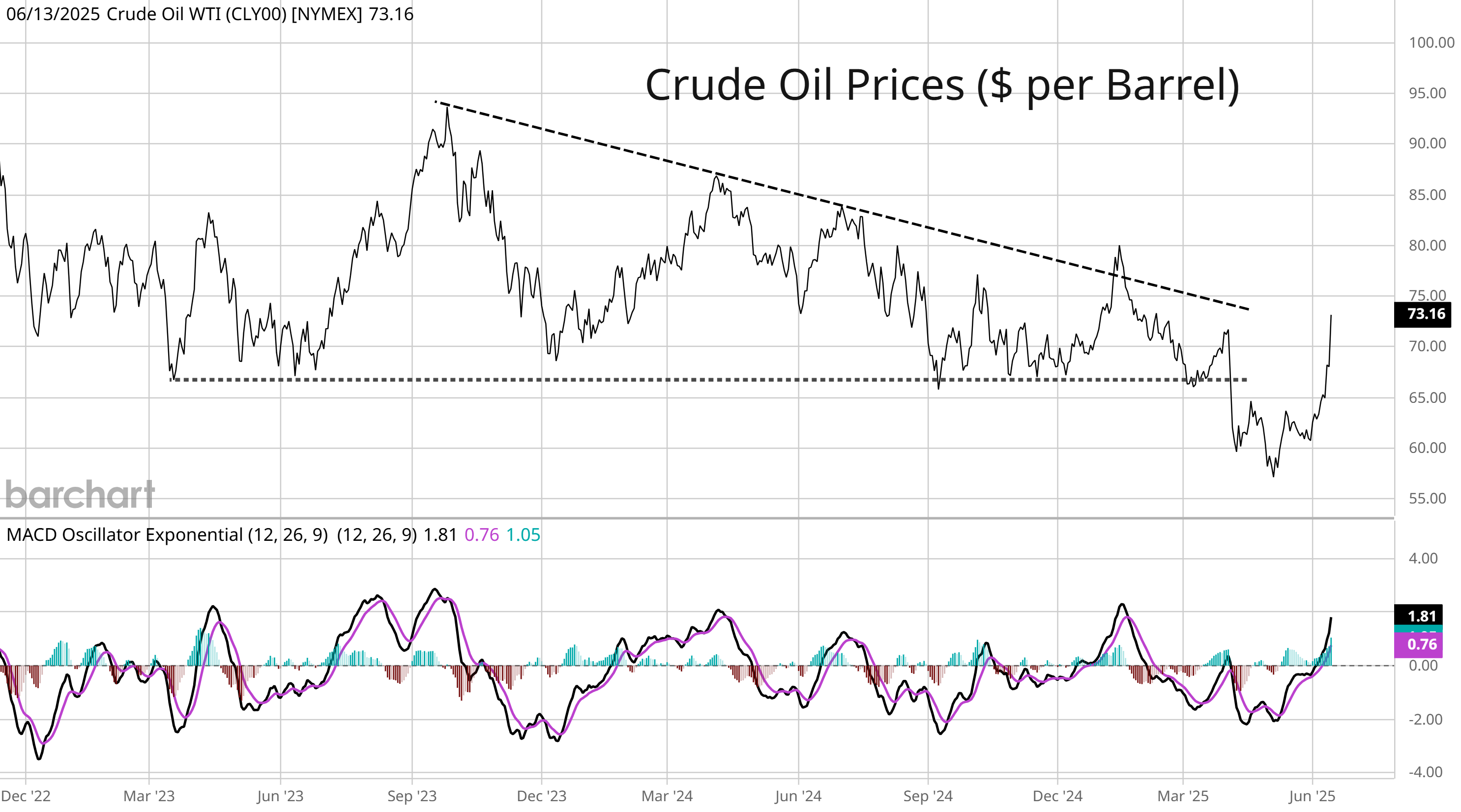 “After dropping below key support at the $66 level, oil prices have staged a massive reversal on geopolitical tensions and fears over Middle East oil supplies,” trading firm Mosaic Asset wrote in the latest edition of its regular newsletter, “The Market Mosaic.”