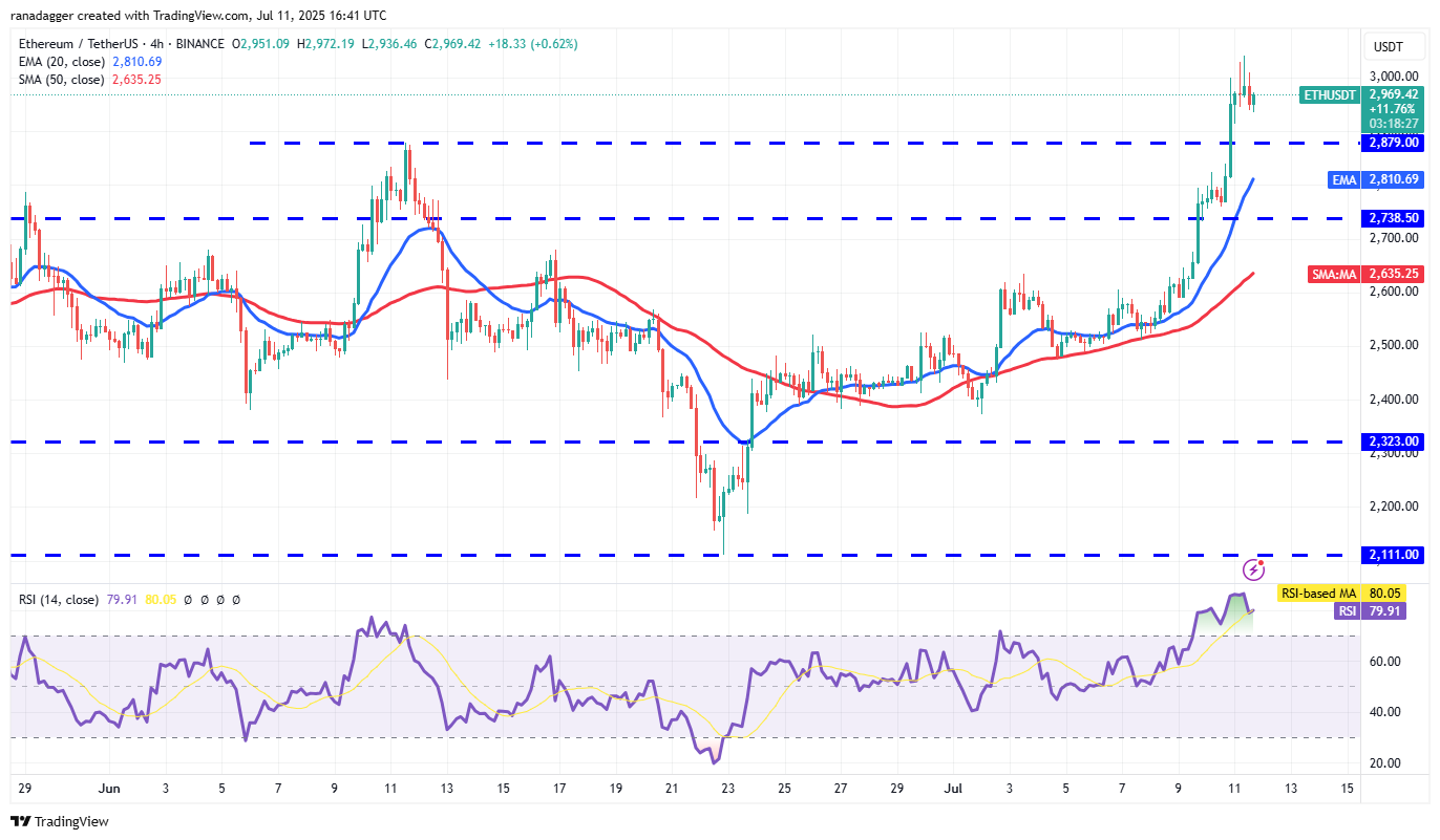 Ether (ETH) rallied sharply from the 20-day EMA ($2,613) on Tuesday and soared above the $2,879 resistance on Thursday.