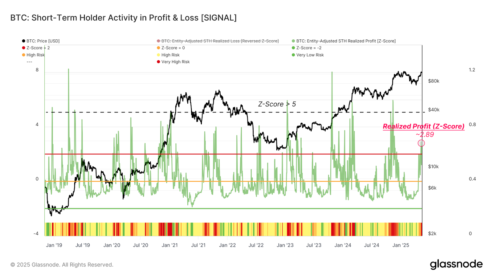 Bitcoin short-term holder supply profit and loss data from Glassnode supports this view, as shown in the chart below. The onchain data company highlighted profit taking for short-term traders but explained that it does not exceed the statistical norm, leaving room for further price upside.