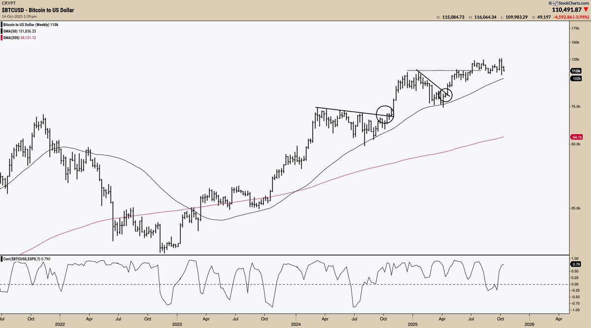 Fellow analyst Captain Faibik highlighted that Bitcoin appears to be following a rising wedge pattern on the weekly chart, with a measured target of $52,200.