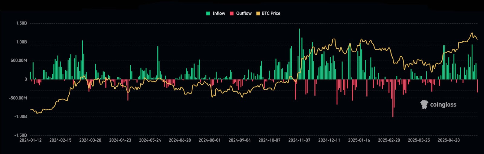 Over the past 5 weeks, more than $9 billion has entered spot BTC ETFs, while nearly $3 billion has outflowed from gold ETFs, observed ETF Store President Nate Geraci on May 29.