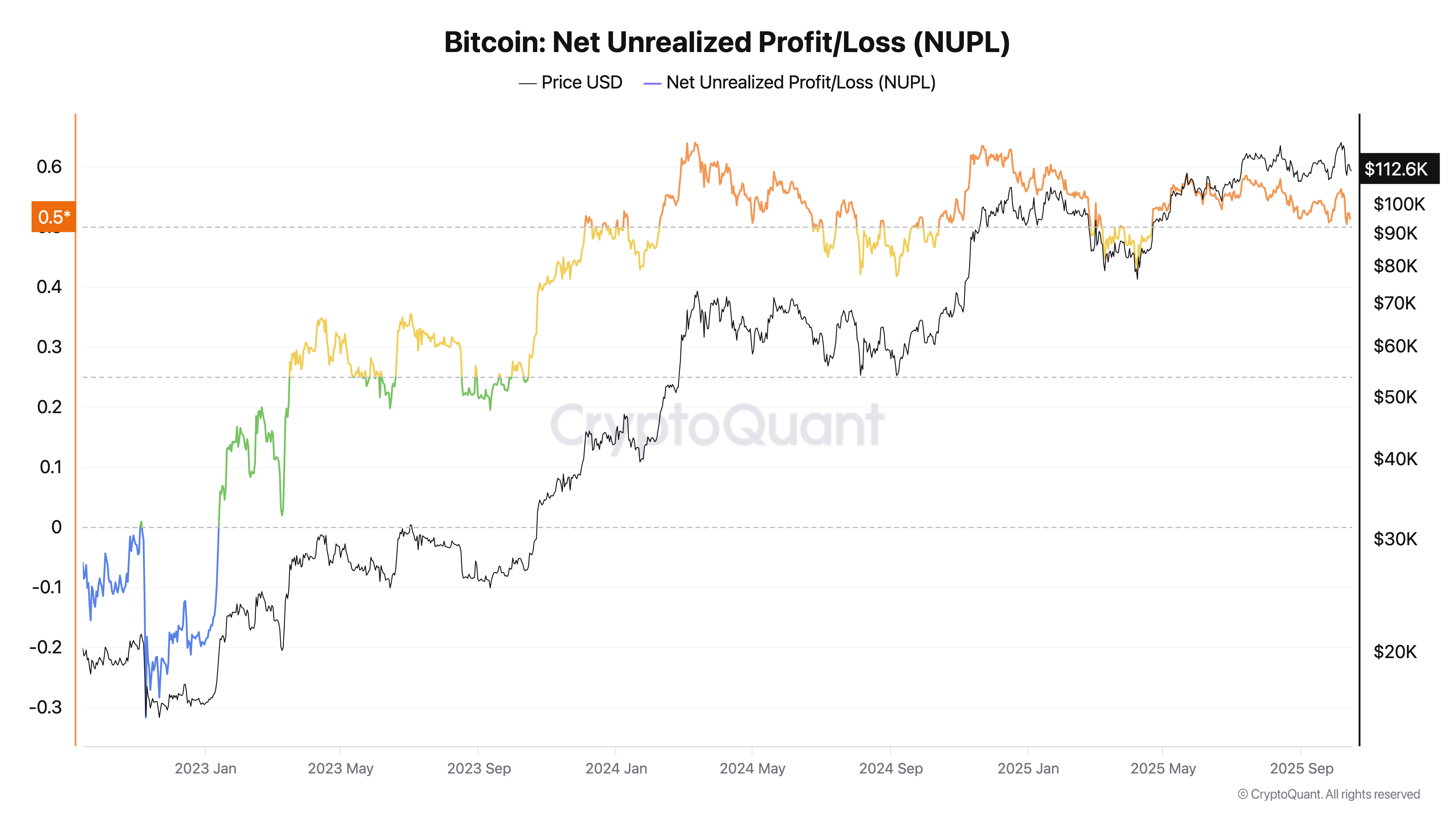 “The NUPL currently sits at +0.52, a zone historically marking the shift from optimism to euphoria,” contributor XWIN Research Japan wrote.