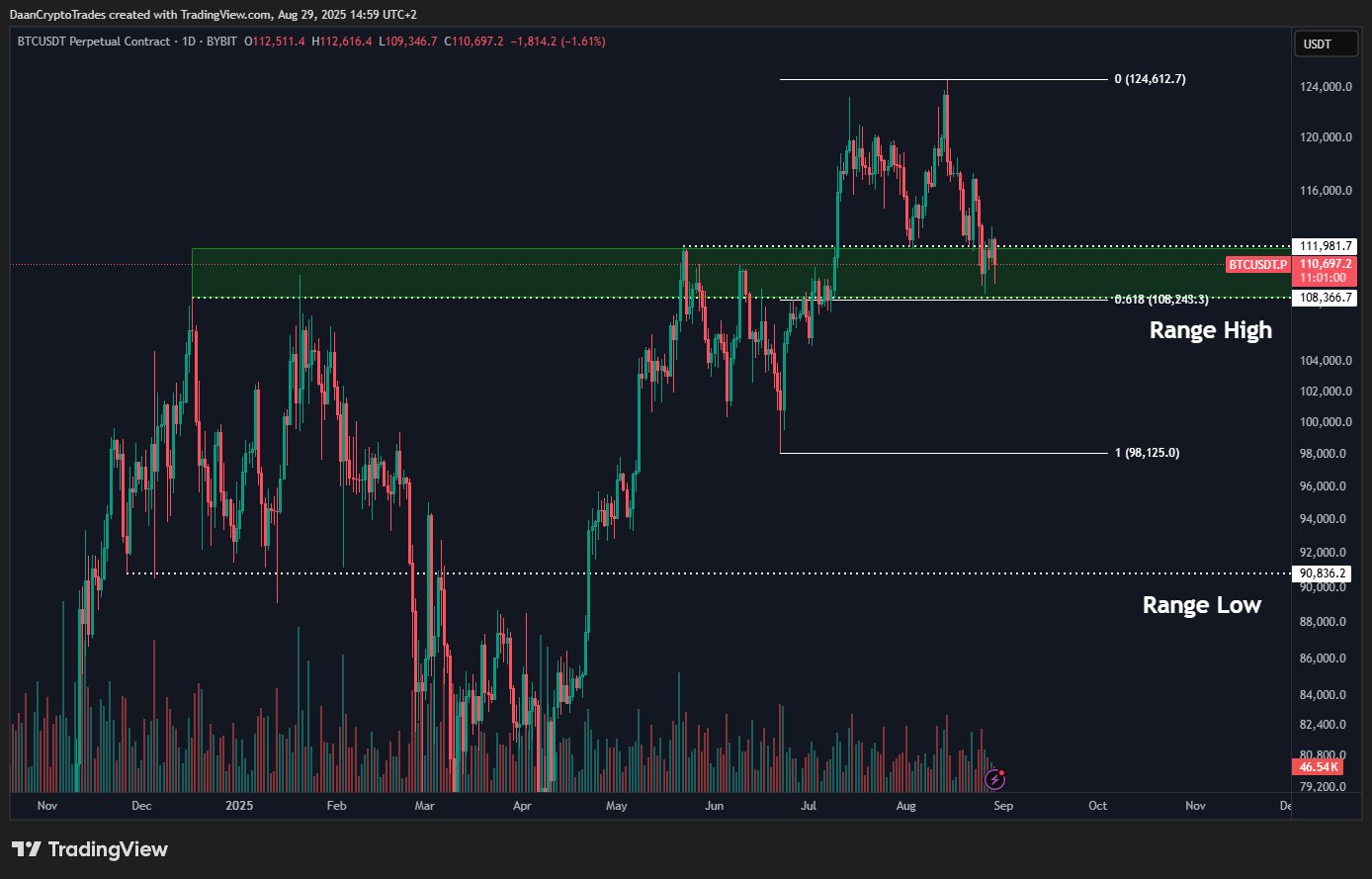 “Good area to keep watching. Right on top of the previous range & consolidation area,” popular trader Daan Crypto Trades noted in a post on X.
