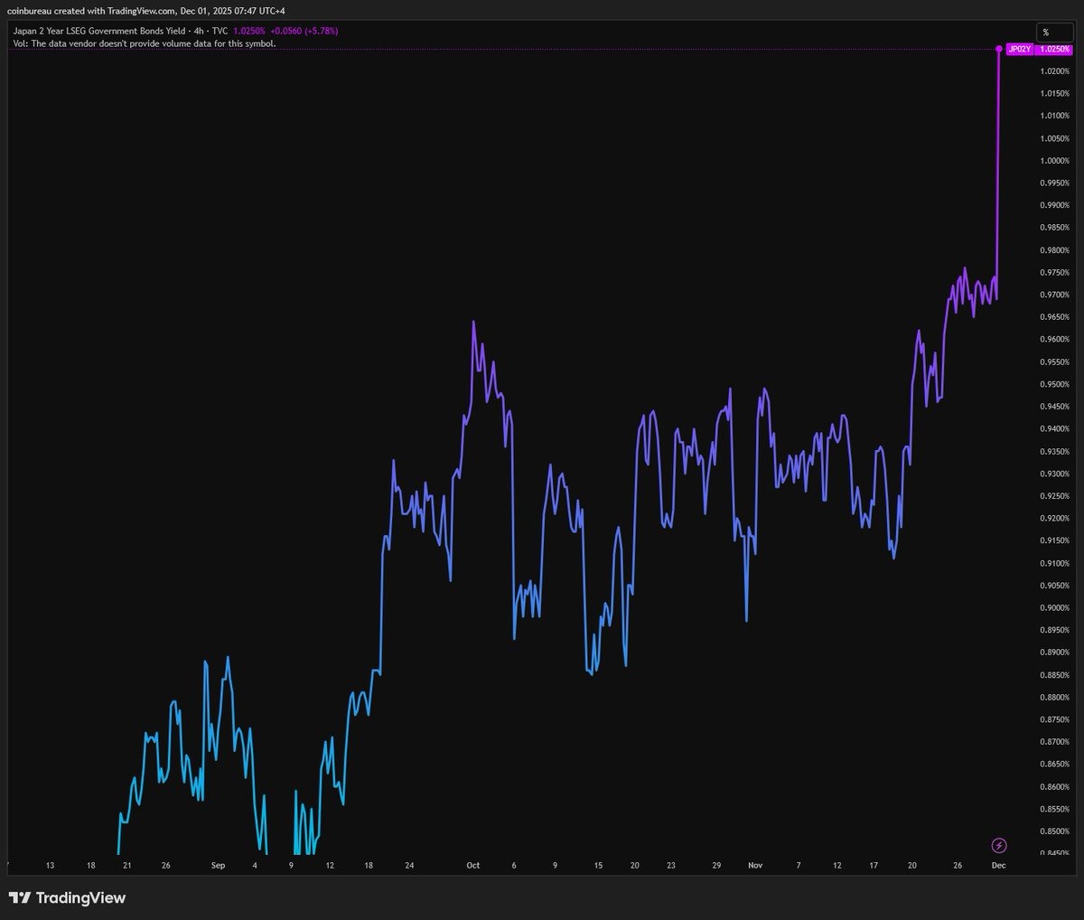 Japanese yields are spiking with the two-year at its highest level since 2008. The yen is also surging, said co-founder and CEO of Coinbureau Nic in his latest post on X.