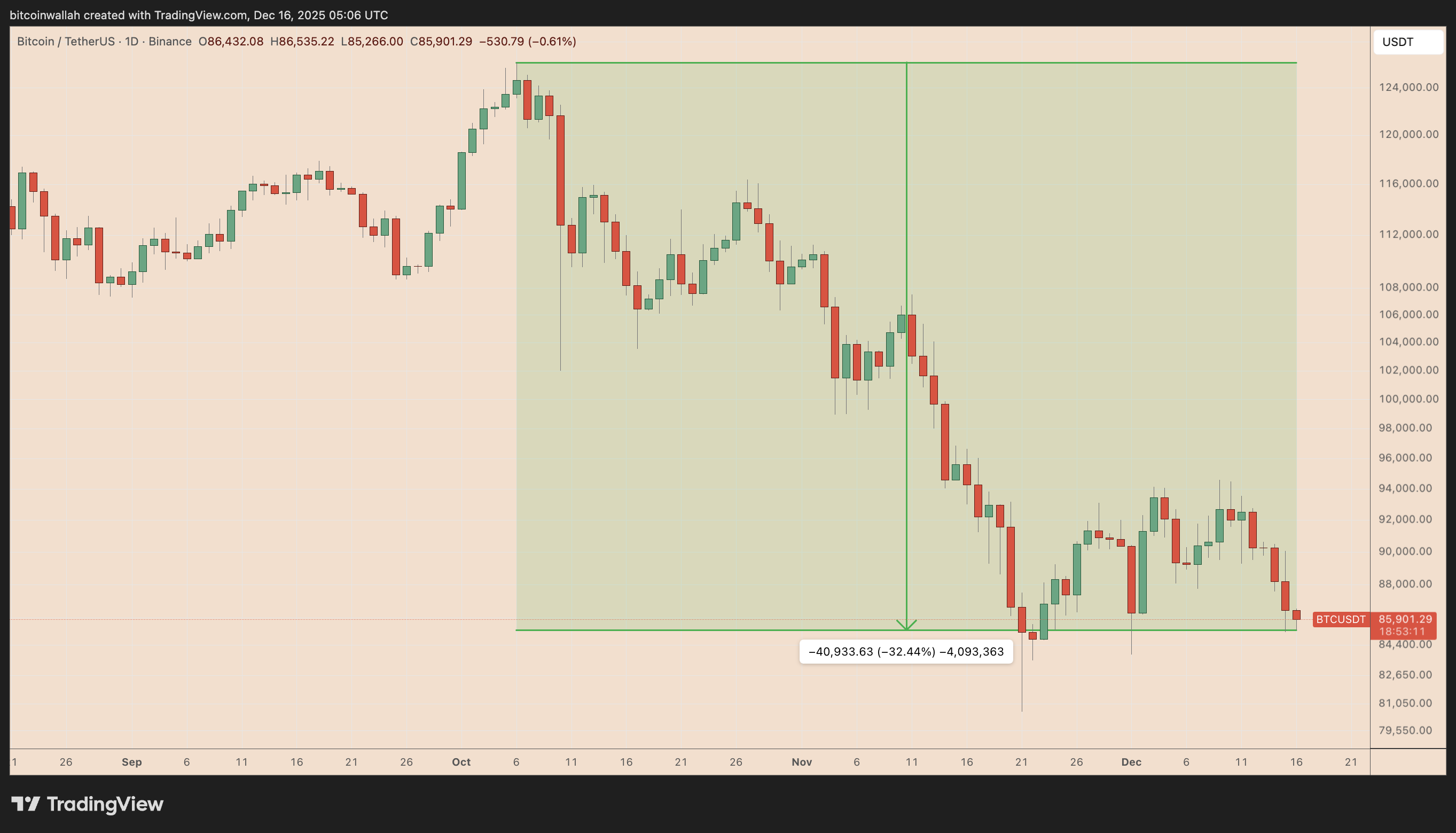 Adding to the downside outlook, veteran trader Peter Brandt highlighted Bitcoin’s recent breakdown below its parabolic support, a move that historically led prices down by around 80%. In other words, BTC price could reach as low as $25,000 if the fractal repeats.