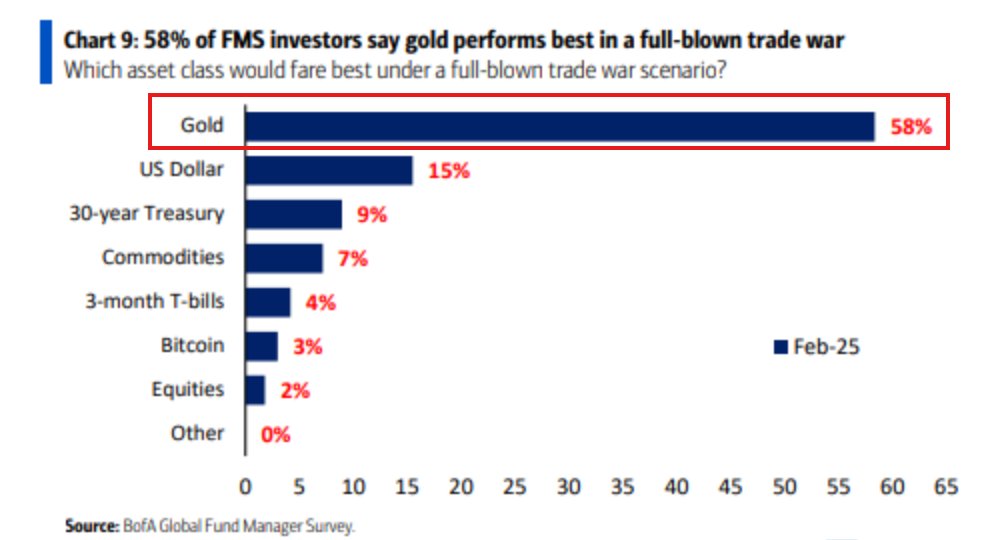 A survey by Bank of America in late March showed that respondents overwhelmingly favored gold as a volatility hedge, with 58% choosing it.