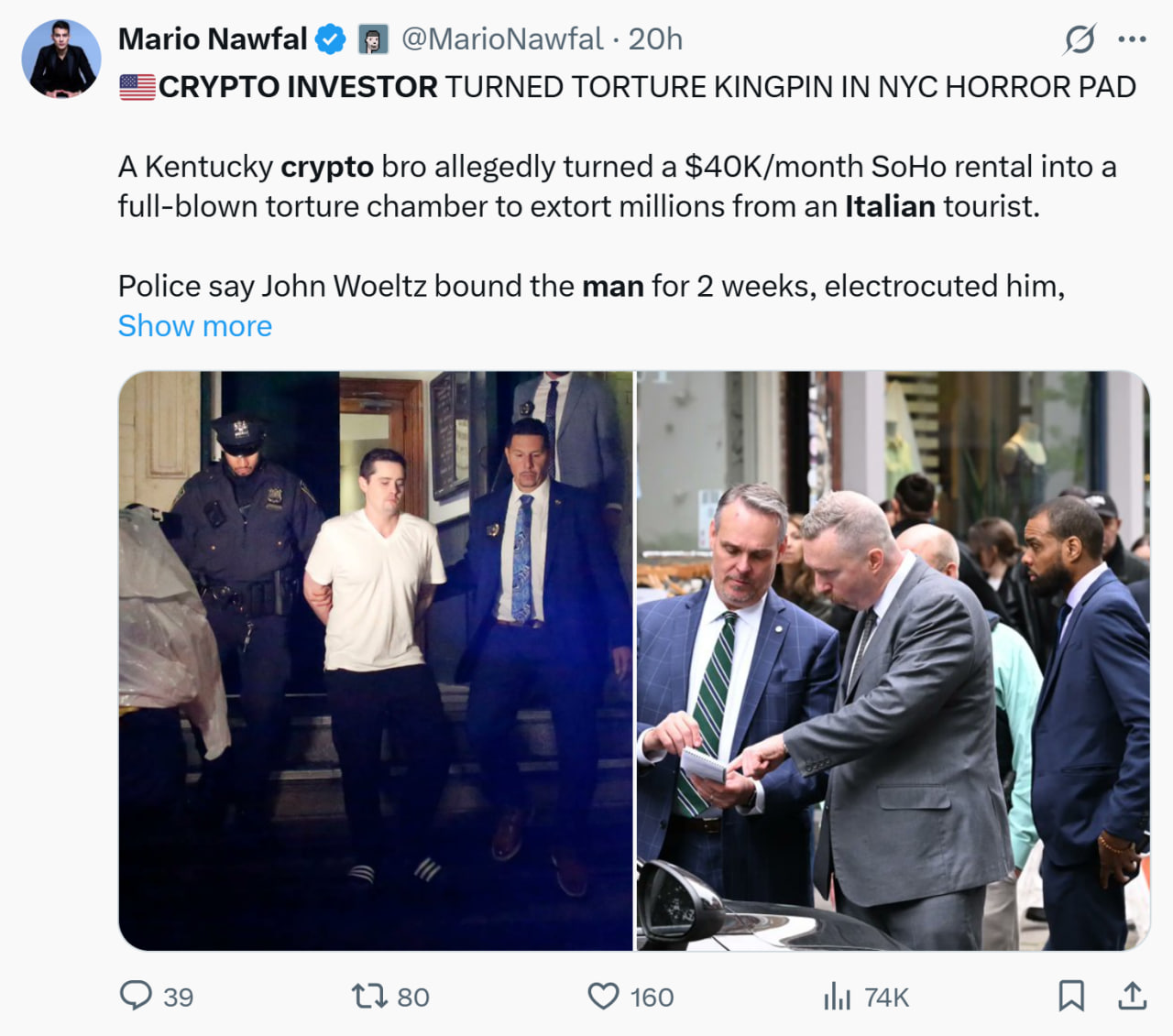 A Manhattan crypto investor is facing serious charges after allegedly kidnapping and torturing an Italian man in a disturbing bid to extract access to digital assets.