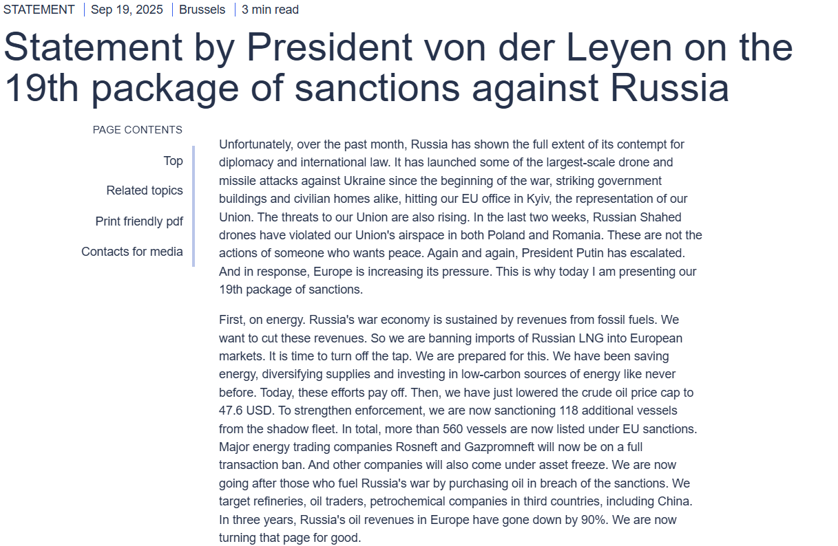 Von der Leyen said the measures respond to Russia’s “largest-scale drone and missile attacks against Ukraine,” which have also seen Shahed drones violate EU airspace in Poland and Romania.