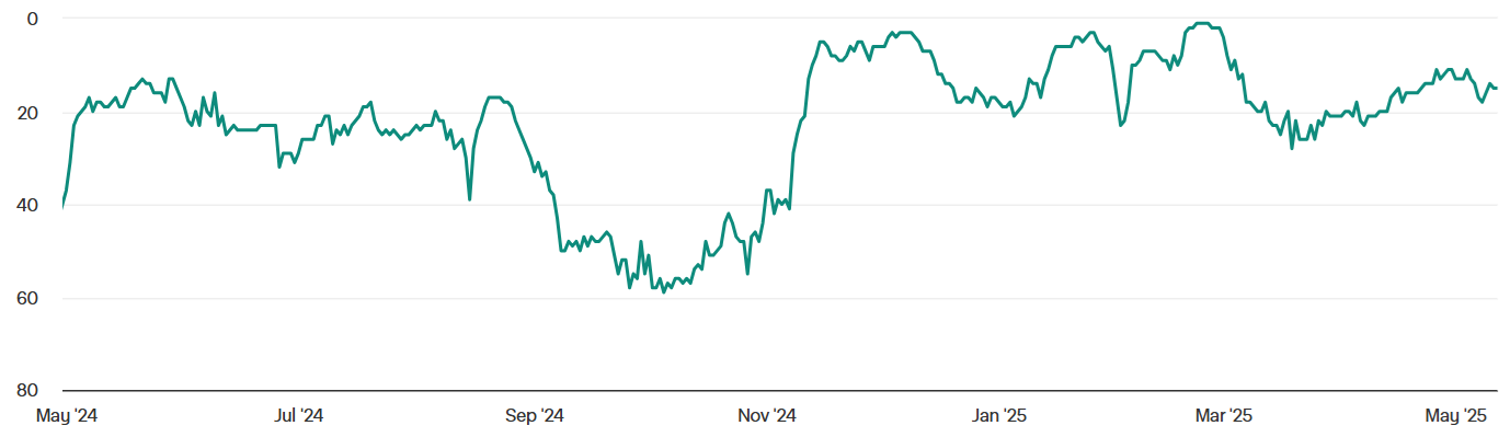If mobile app rankings and Google search trends for “Bitcoin” can serve as proxies for retail interest, demand last peaked on Nov. 15, 2024, when the Coinbase app jumped from the 40th to the 5th position in under two weeks. At the same time, search activity spiked to its highest level in over two years.