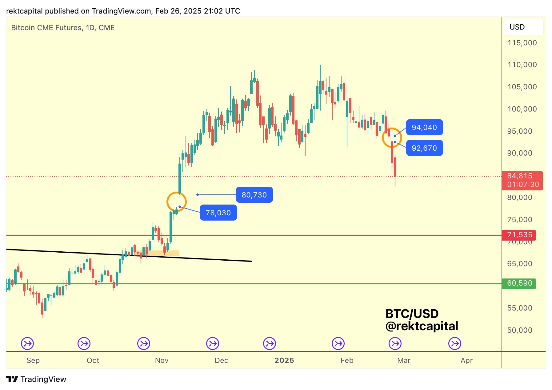 Rekt Capital cũng lưu ý khoảng cách CME tăng ở mức khoảng 92,000 đô la, có khả năng đưa ra mục tiêu nếu tình trạng giảm nhẹ sau đó.