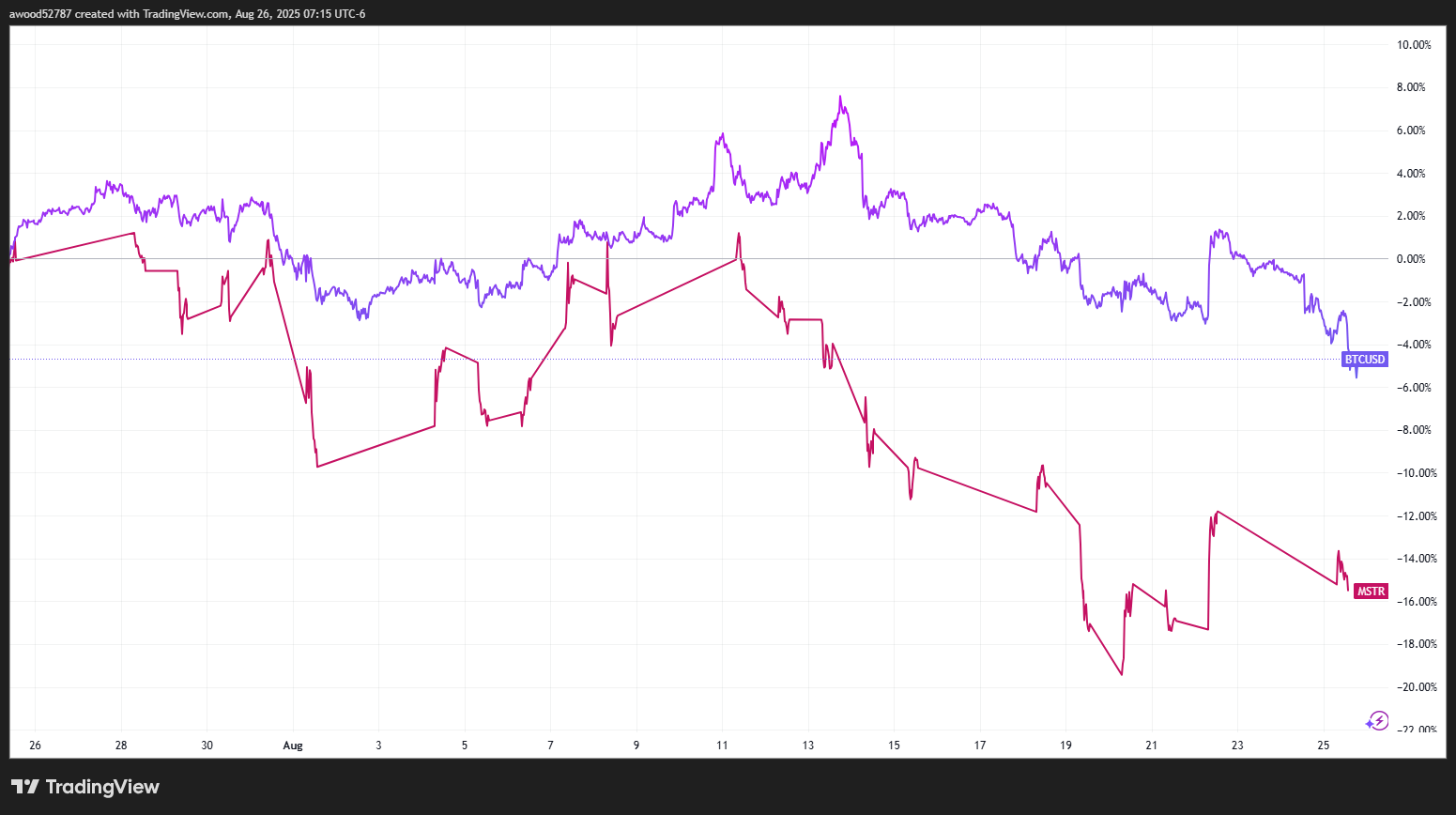 If the price of BTC dips too close to the Bitcoin-per-share metric, or net asset value (NAV), of a company’s stock, that stock loses the valuation buffer that was supposed to lift its stock price.