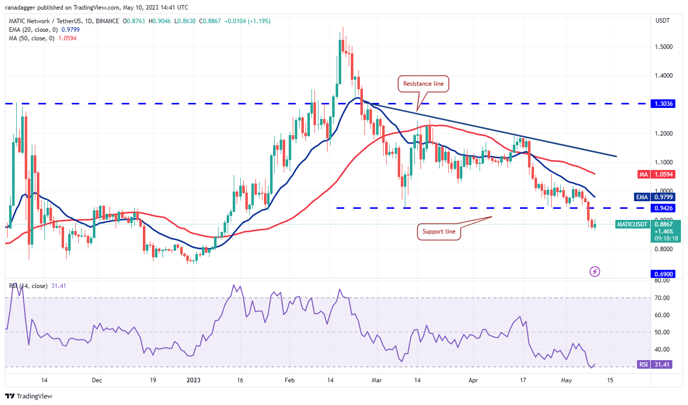Contrarily, a break and close above the 20-day EMA ($0.98) will suggest that lower levels are attracting solid buying. That may trap several aggressive bears and propel MATIC price toward the resistance line.