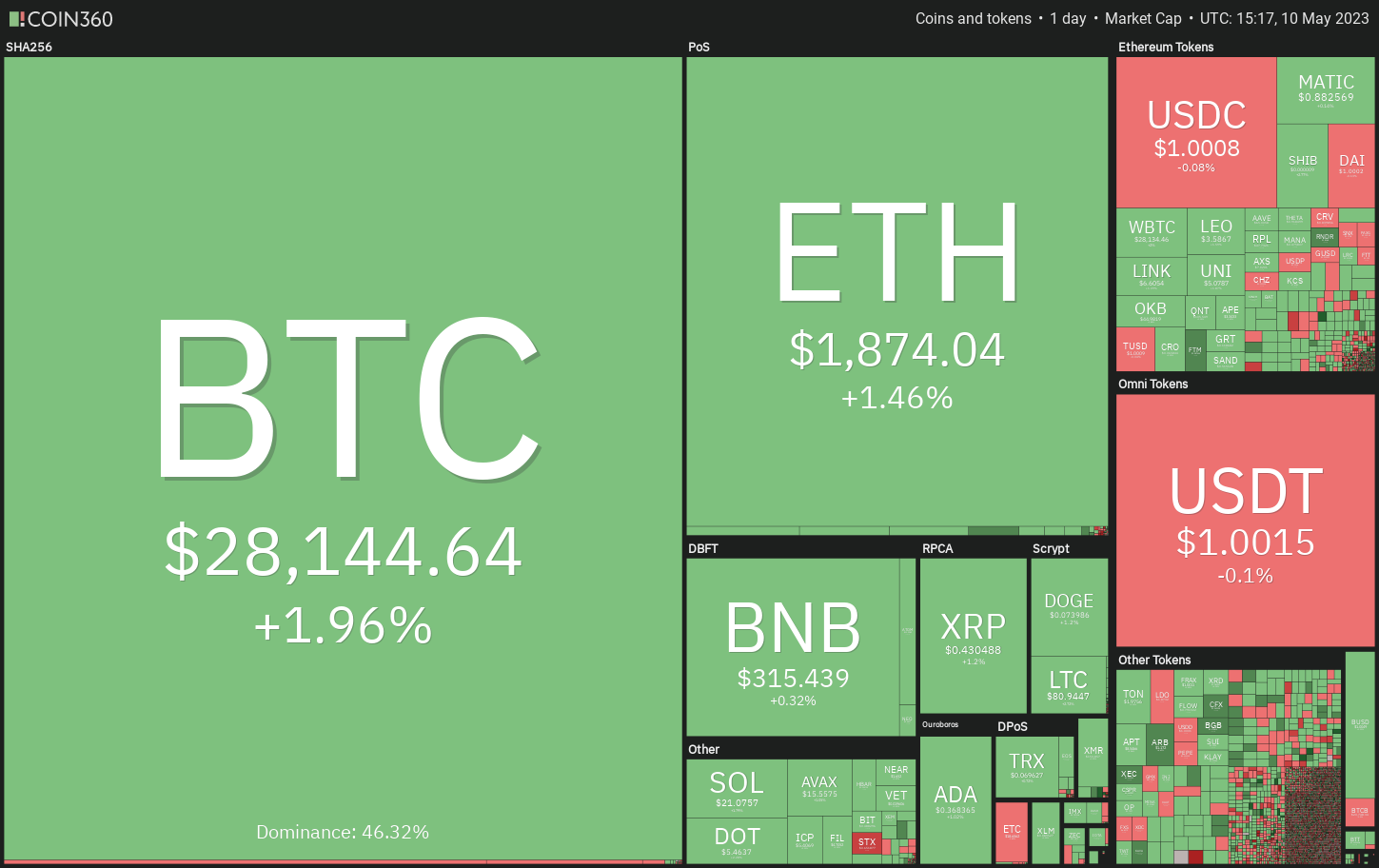 Nếu Fed xoay và bắt đầu cắt giảm lãi suất khi FedWatch Tool dự án, điều đó có thể là tích cực đối với các tài sản rủi ro như cổ phiếu và tiền điện tử. Bitcoin (BTC) đã phản ứng tích cực với dữ liệu CPI và đã tăng lên trên $28,000 vào ngày