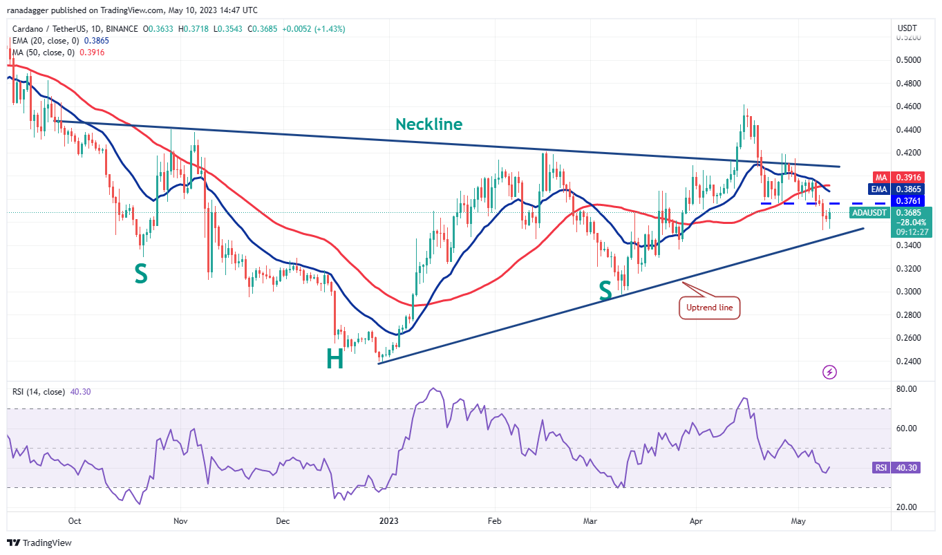Cardano (ADA) plummeted below the $0.37 support on May 8, indicating that bears are trying to seize control.