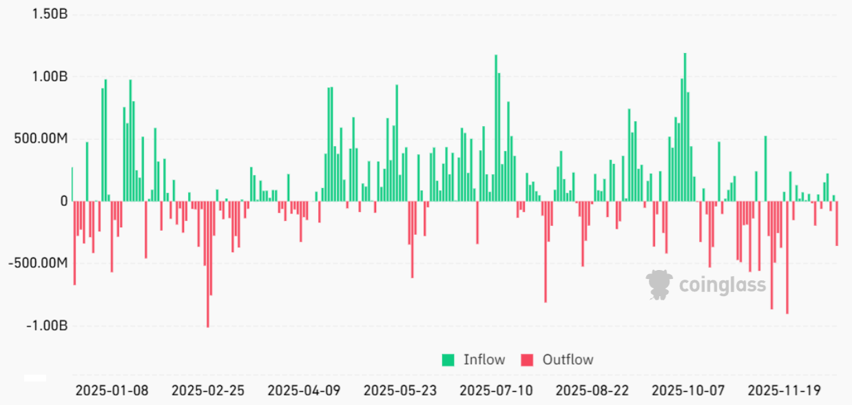 The spot Bitcoin ETFs recorded $358 million in net outflows on Monday, marking the largest daily withdrawal in over three weeks. The move fueled speculation that institutional investors might be reducing their exposure after the psychological $90,000 support level was breached.
